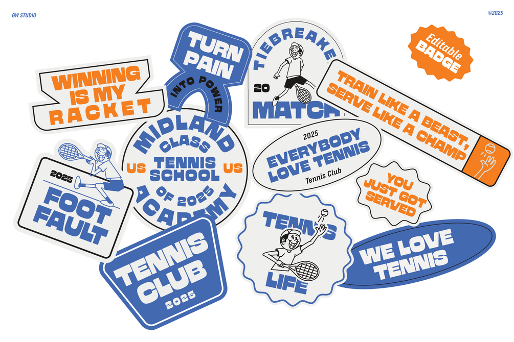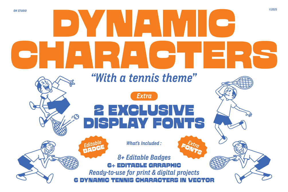 - 6 Editable Tennis Characters – Fun, dynamic, and full of personality.