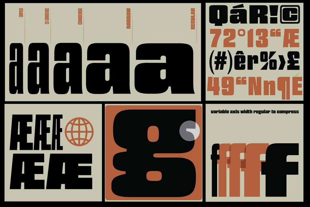 Ultrabold Squarist typefaces with variable width compress to regular. a typeface with a bold and modern design, featuring very thick characters and rigid geometric shapes.